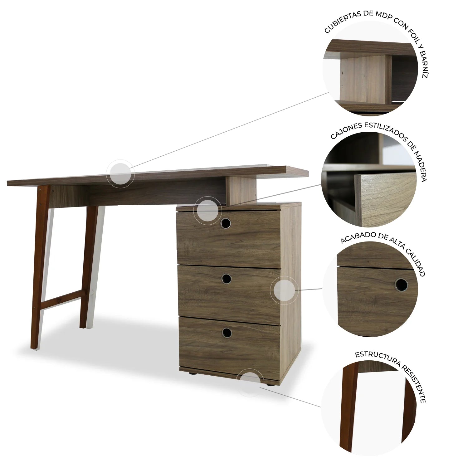 Logra un equilibrio perfecto entre diseño y utilidad con el Escritorio con Cajonera Milano de Mobilek.