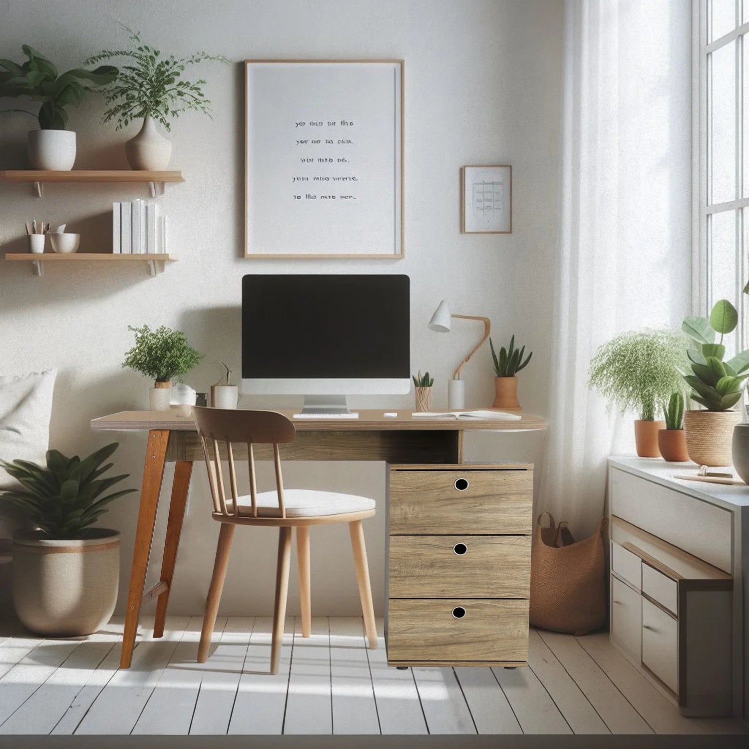 - Almacenamiento Inteligente: Incluye una cajonera de 3 compartimentos con correderas metálicas suaves, perfecta para organizar documentos y artículos personales.