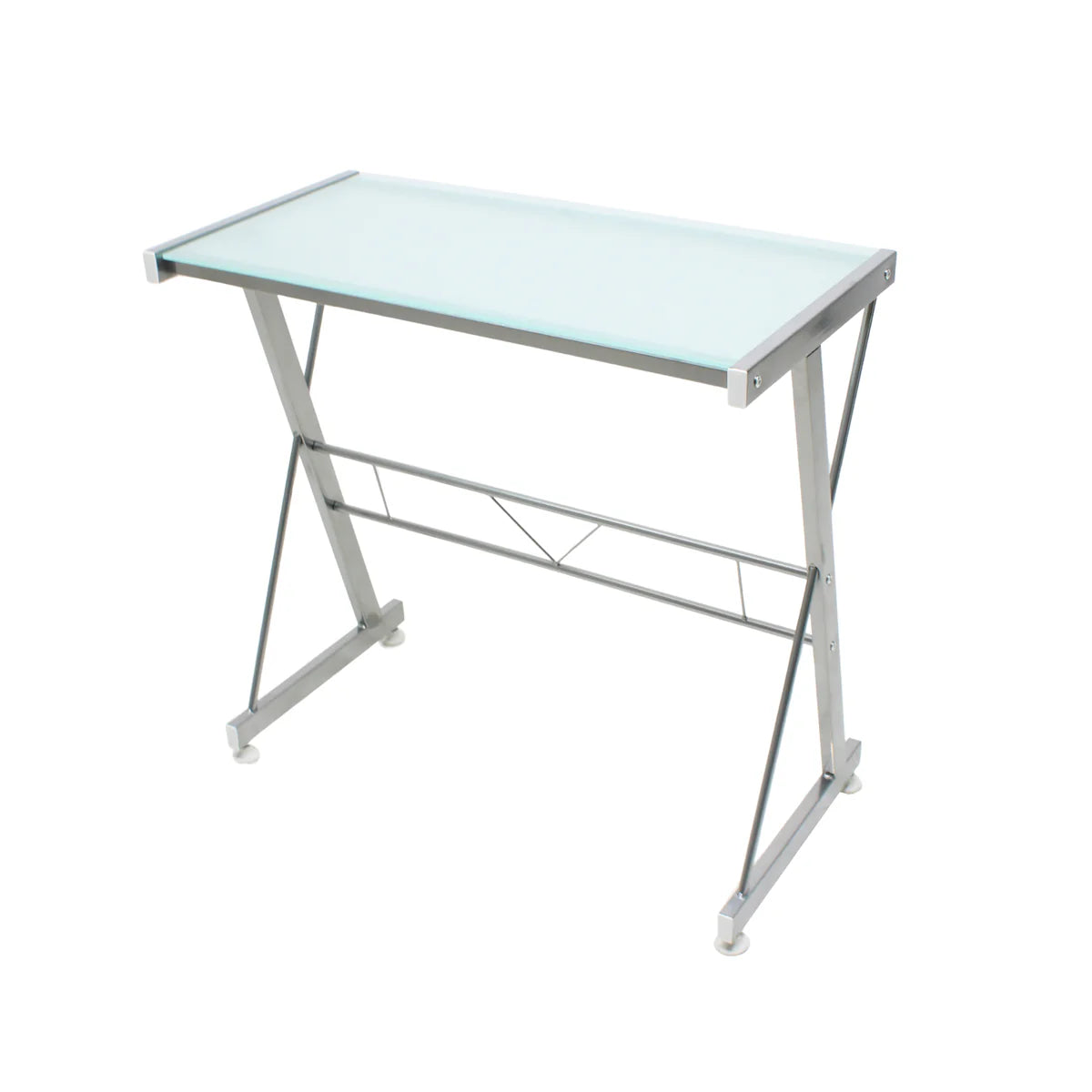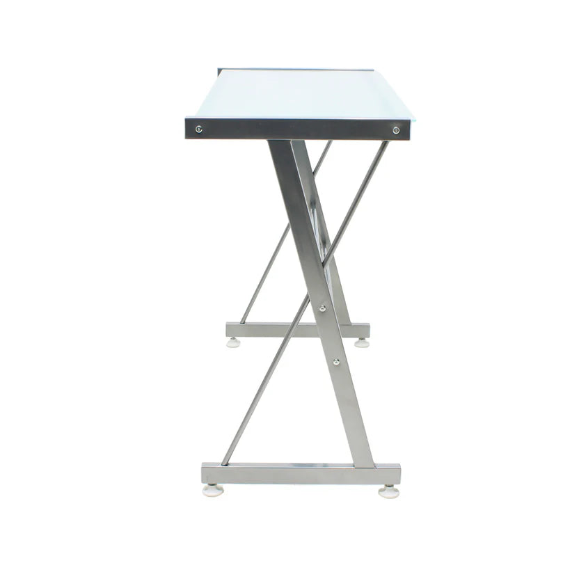 Escritorio Metálico con Cristal Templado Plata | JM-907G Mobilek