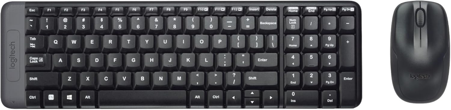 El combo inalámbrico Logitech MK220 incluye teclado de tamaño completo con teclas estándar en color negro y mouse óptico con 3 botones y resolución de 1000 DPI. Ambos dispositivos usan tecnología de conectividad inalámbrica de 2.4 GHz con un alcance de hasta 10 metros, ofreciendo libertad de movimiento sin retraso ni interrupciones.